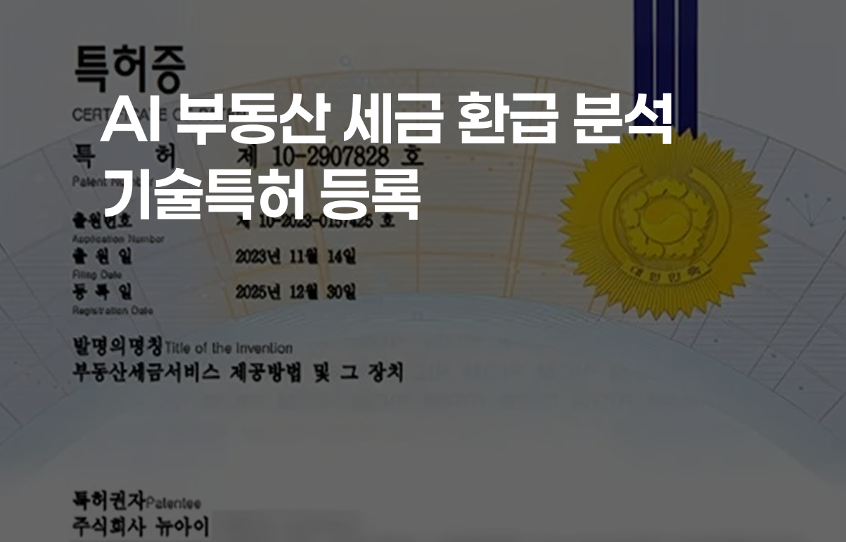 택스아이(TAX AI) 운영사 ‘뉴아이’, AI 부동산 세금 환급 분석 기술특허 등록 완료